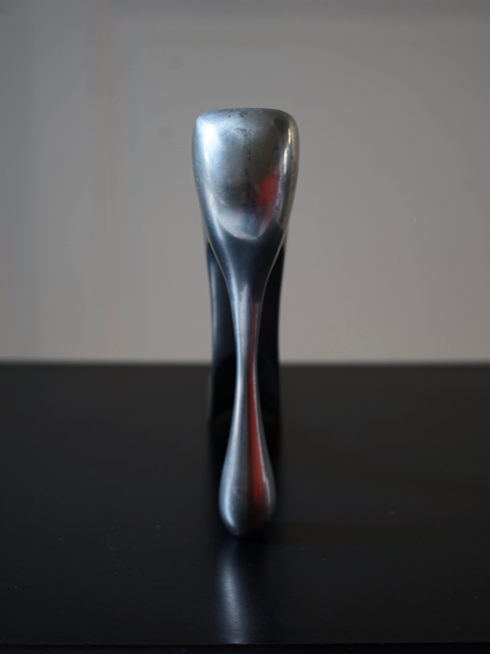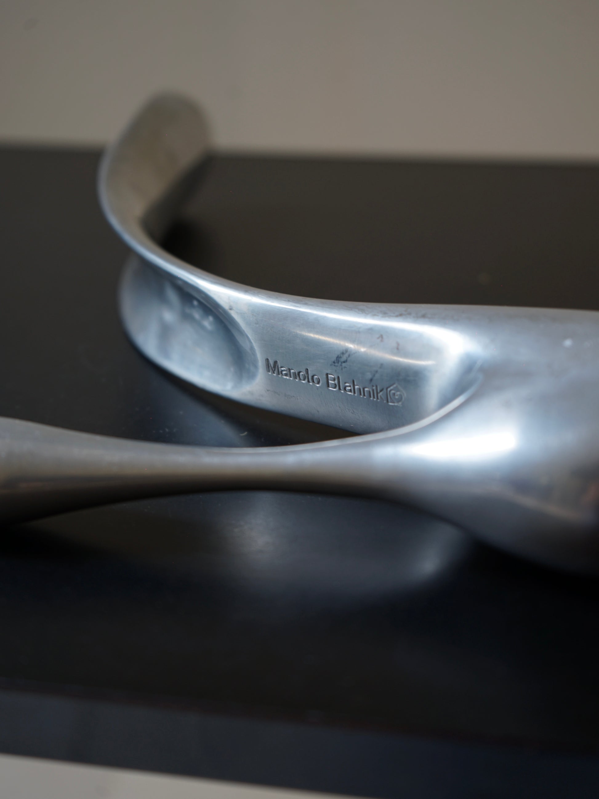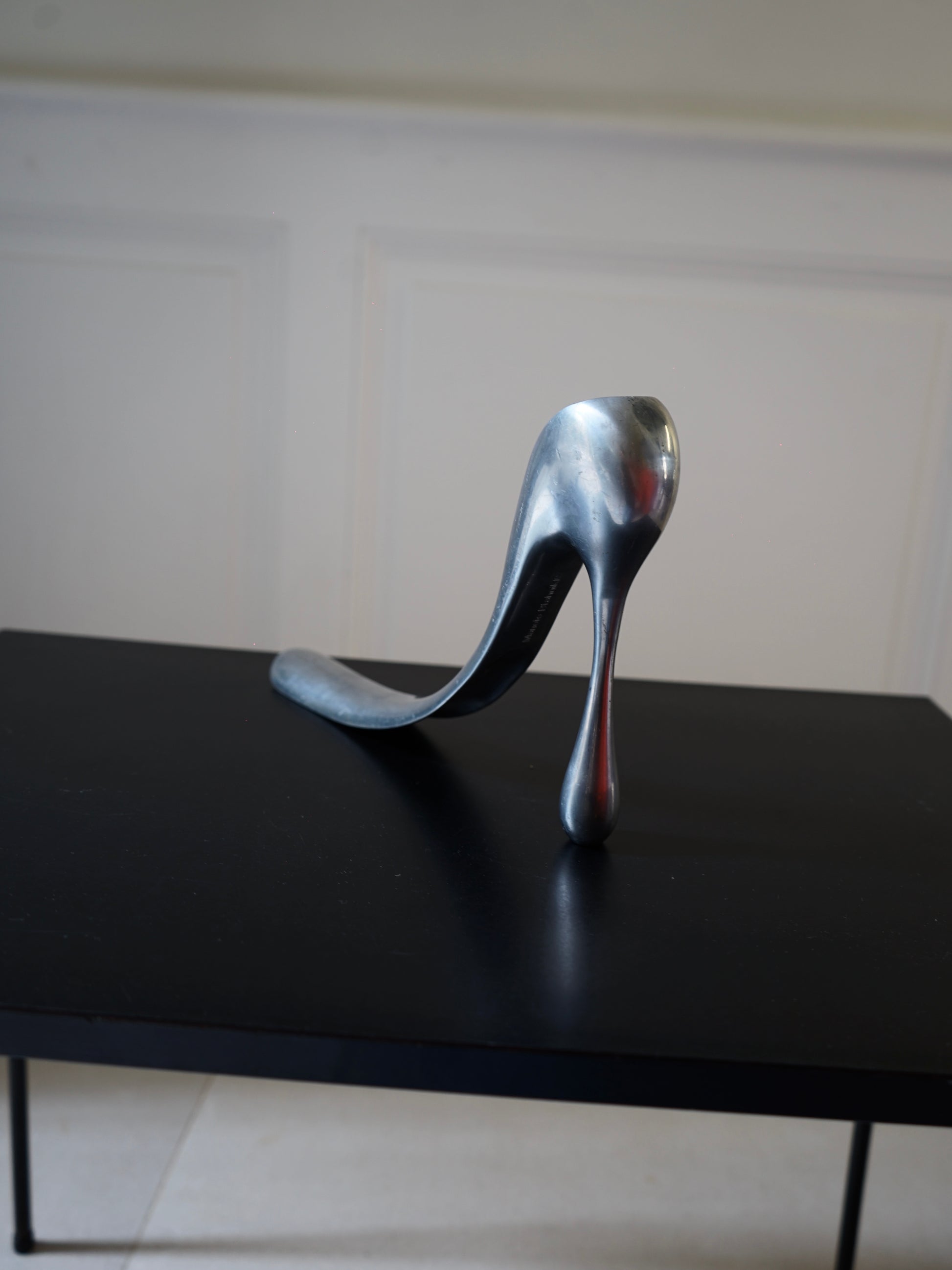 MANOLO BLAHNIK pour HABITAT Chausse-pied en fonte d'aluminium brossé, marqué au revers et porte le logo de la marque. 2004.