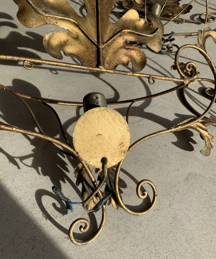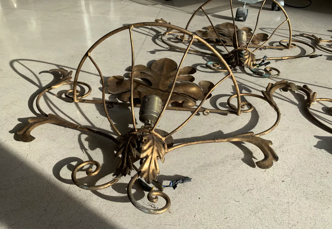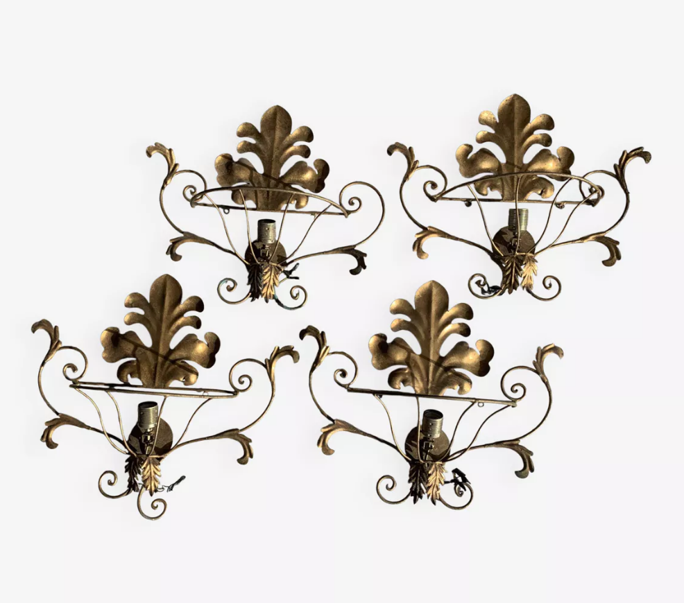 Lot de 4 appliqués en métal doré à décor d'arabesques. XX° siècle.